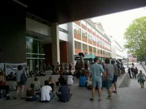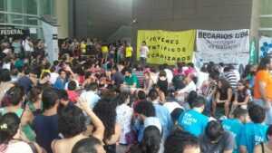 Masivo plenario de Ciencia y Técnica frente al Ministerio